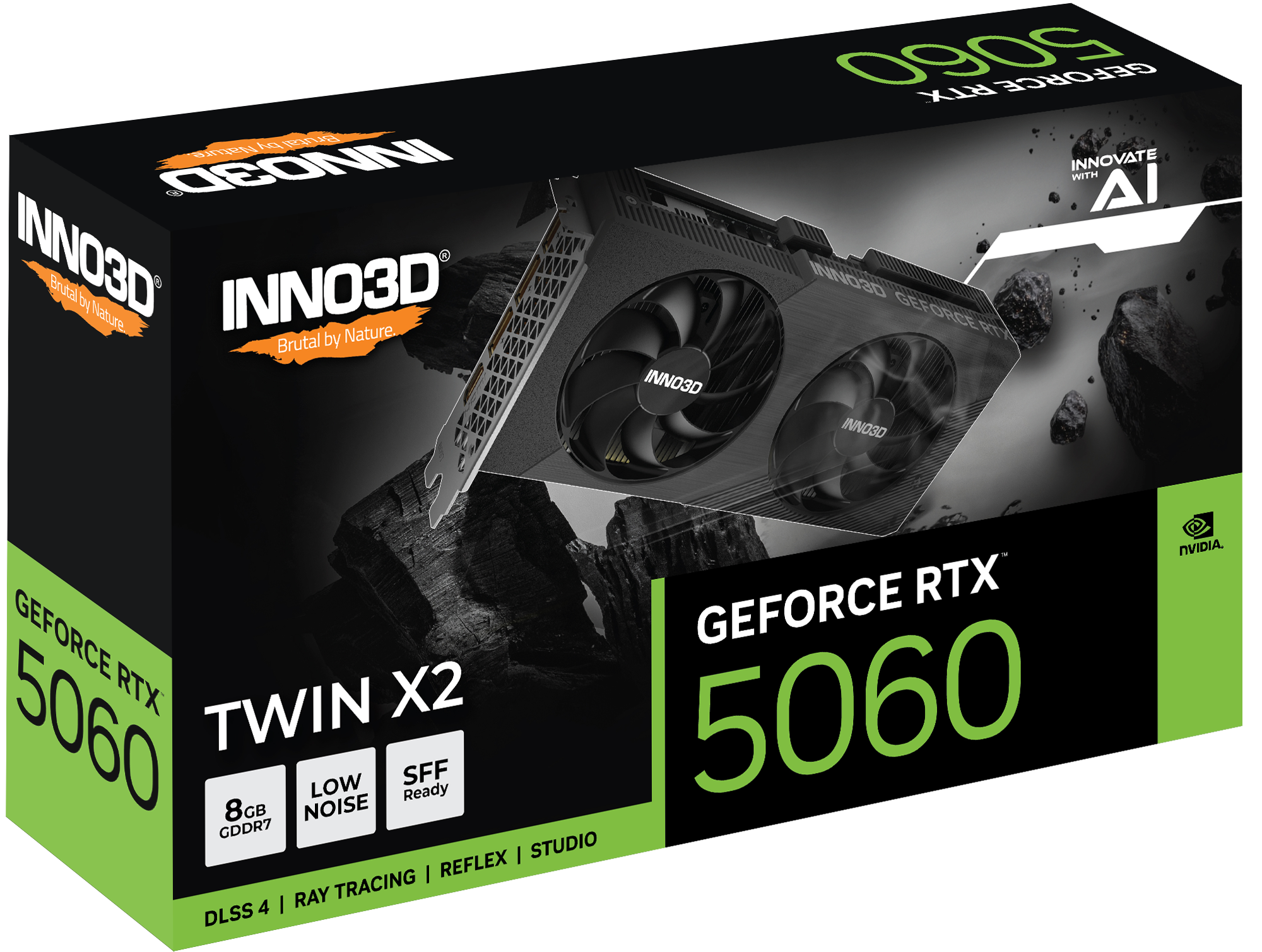 A RTX 5060 Twin X2 da Inno3D combina a nova arquitetura NVIDIA Blackwell com 8GB de memória GDDR7 ultrarrápida, núcleos de Ray Tracing e Tensores de nova geração, e suporte ao DLSS 4. É a placa ideal para quem busca jogar com qualidade gráfica máxima, além de desempenho superior em produtividade, renderização e aplicações com IA.