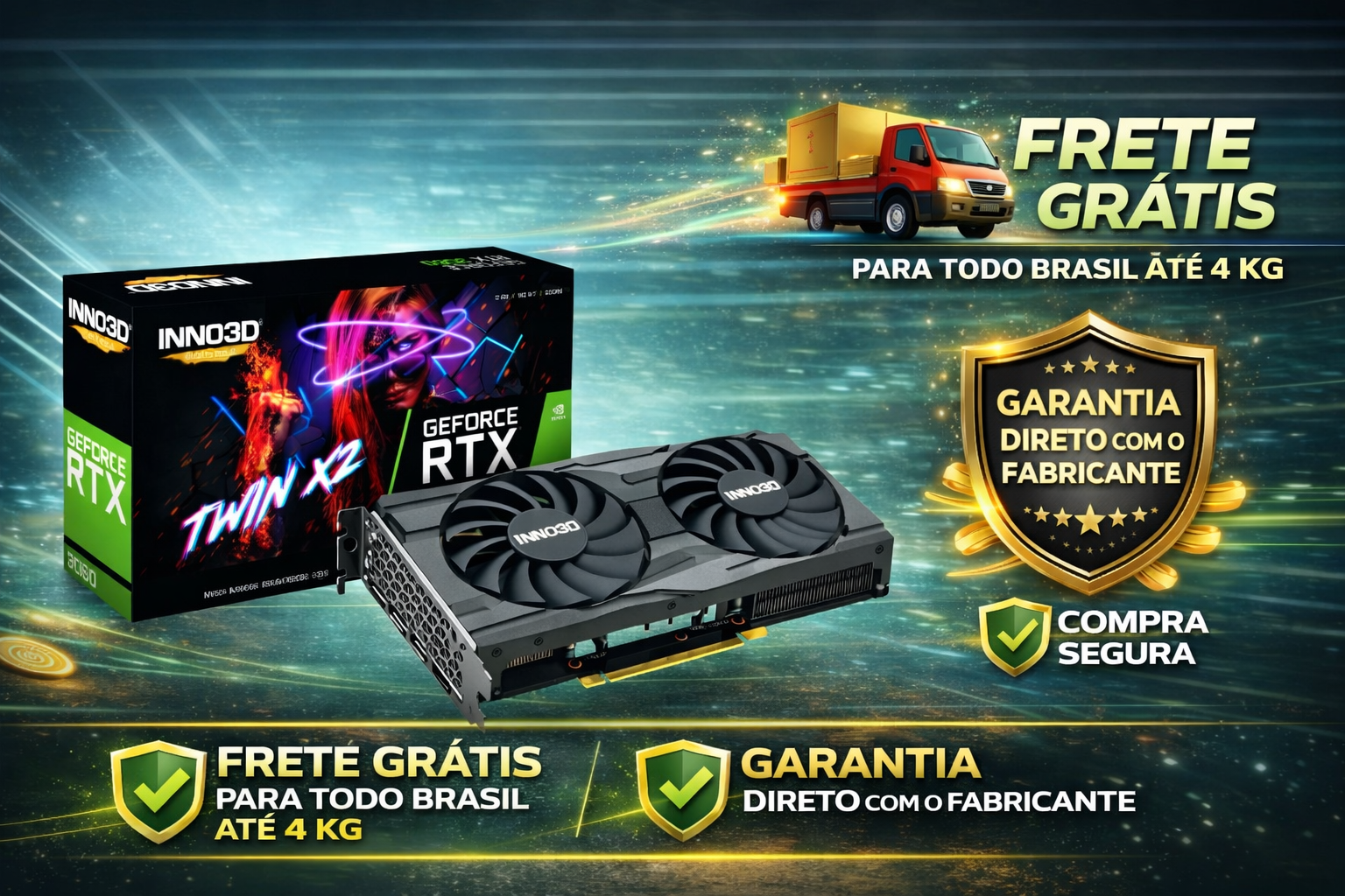 🎮 Placa de Vídeo GeForce RTX 3060 INNO3D Twin 12GB GDDR6A Placa de Vídeo GeForce RTX 3060 INNO3D Twin oferece excelente desempenho para jogos atuais e aplicações gráficas exigentes. Equipada com 12GB de memória GDDR6 e interface de 192 bits, entrega alta performance em Full HD e Quad HD, com suporte às tecnologias Ray Tracing e DLSS.