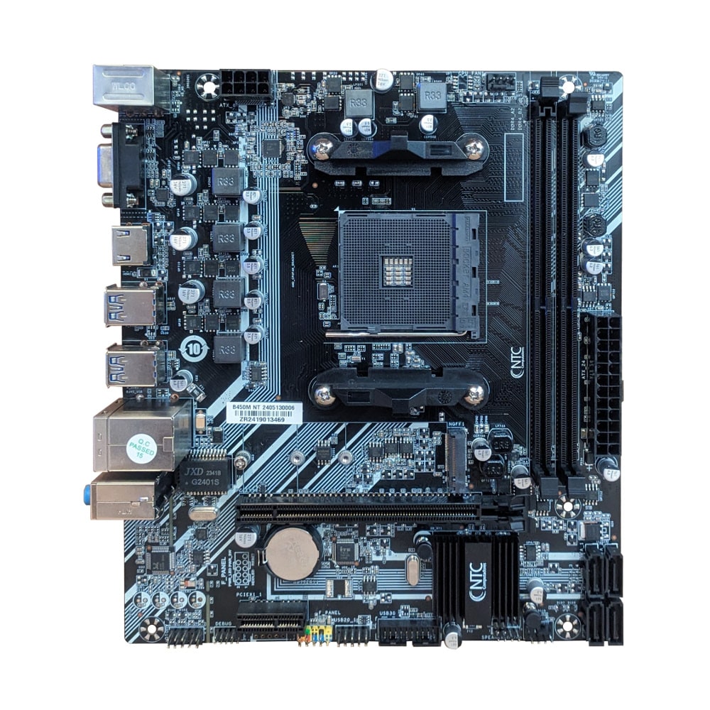 A NTC B450M é uma placa-mãe versátil e econômica para sistemas AM4, oferecendo suporte a memórias DDR4, armazenamento M.2 NVMe e saídas de vídeo HDMI e VGA, sendo ideal para computadores de uso geral, trabalho e estudos.